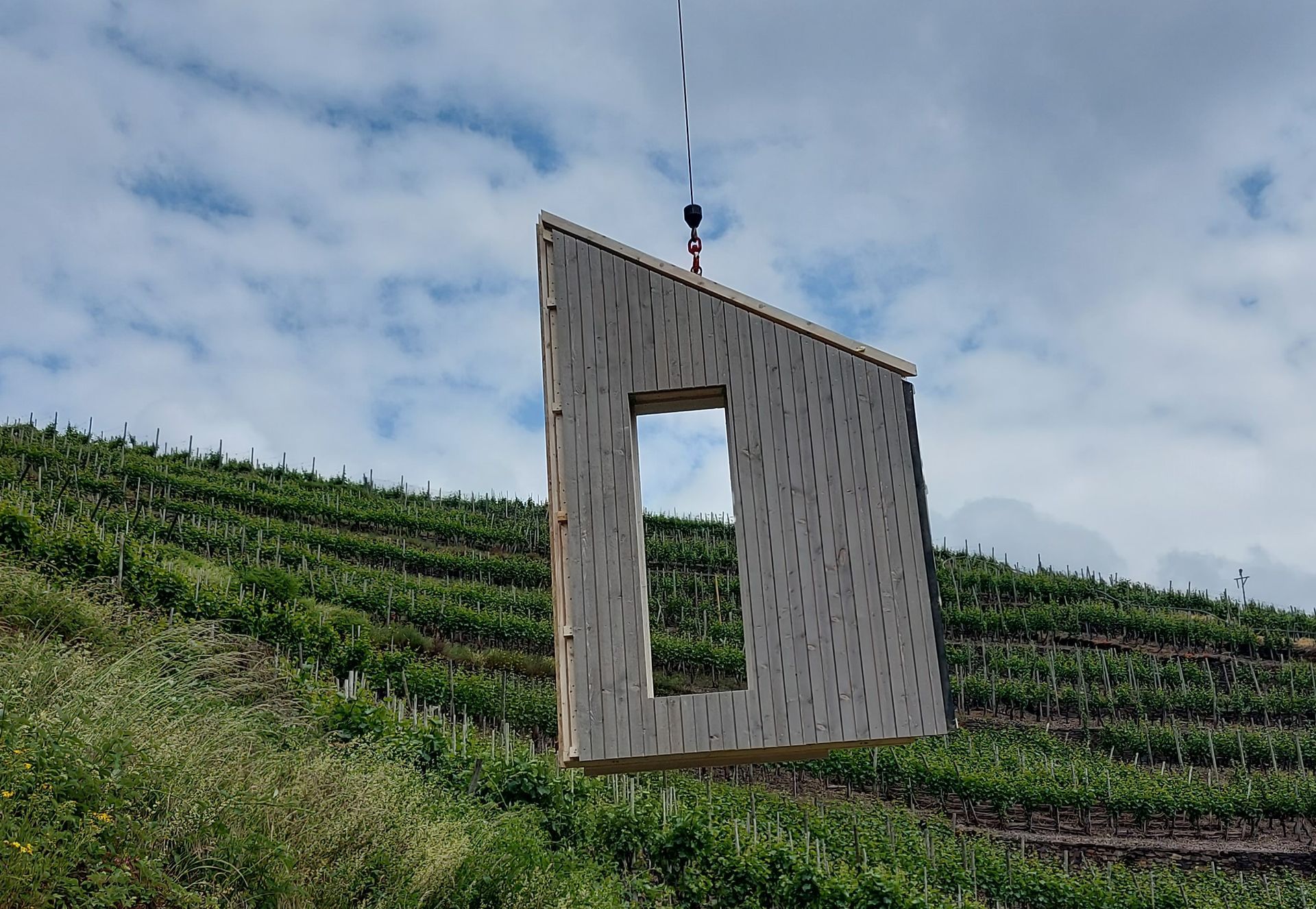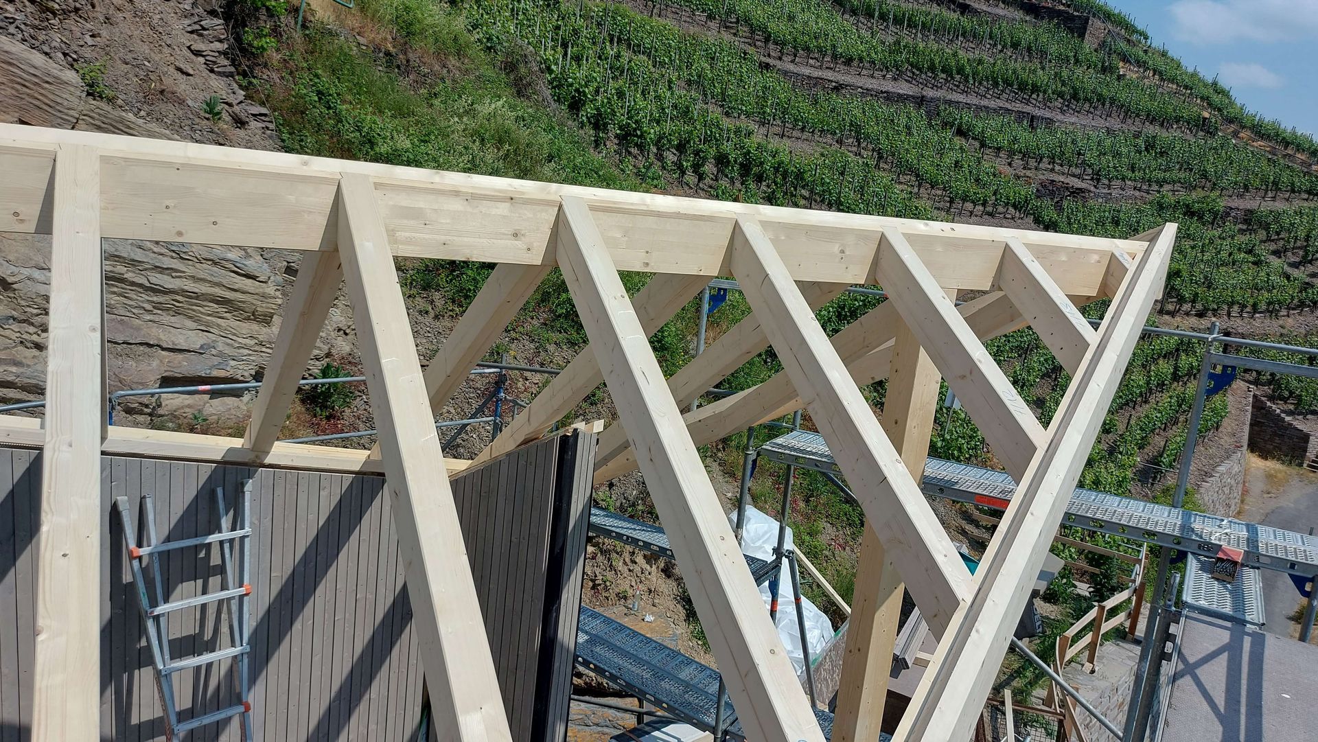 In den Weinbergen, oberhalb Walporzheim, mit Blick auf Ahrweiler und das Kloster Calvarienberg entsteht eine Kapelle die sich in ihrem Entwurf der Hangstruktur und der Gegebenheit der Natur angepasst hat.