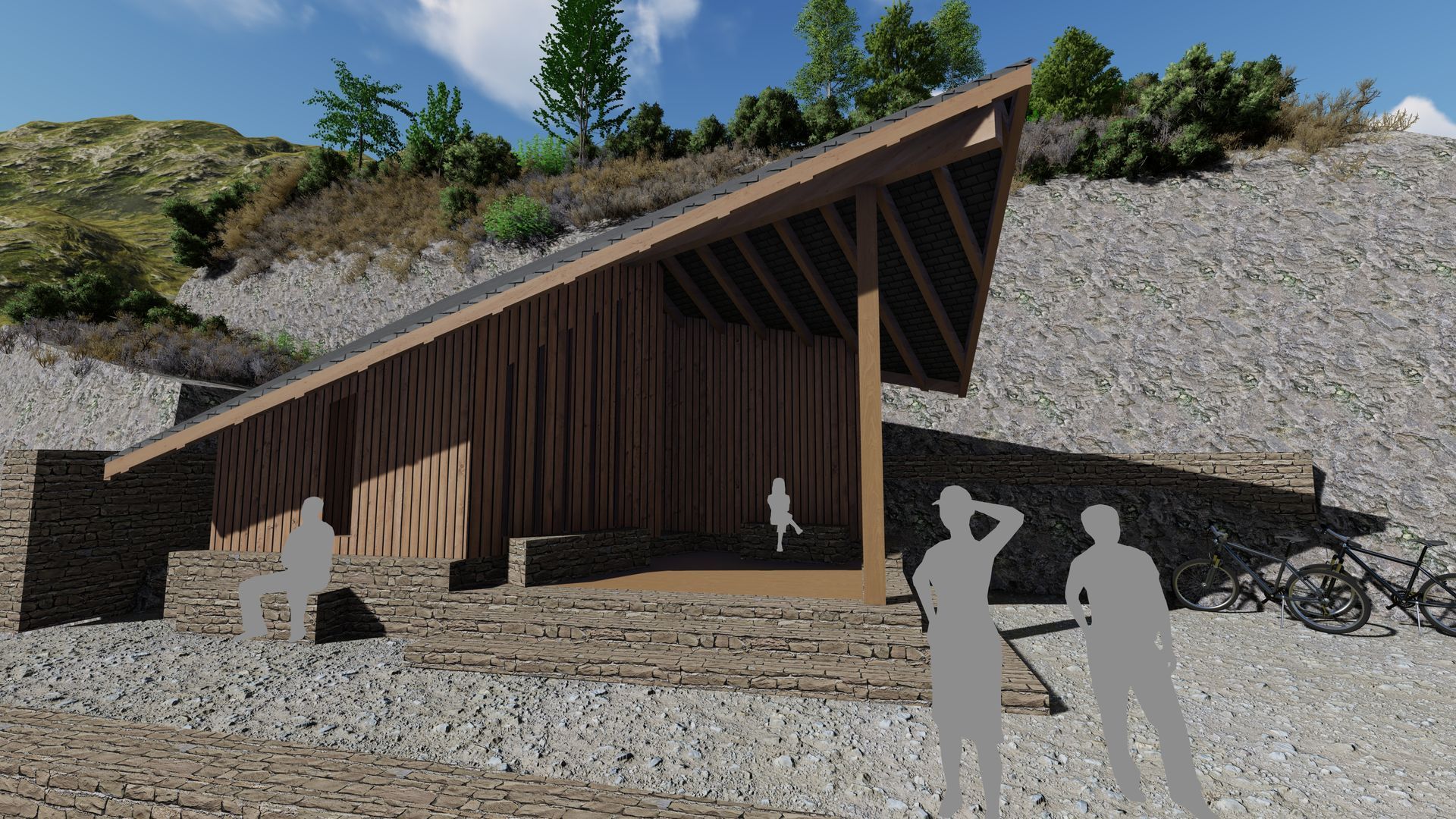 Der Entwurf stammt von KISTNERarchitekten aus Mayen, die Tragwerksplanung von Franz Denkinger aus Bad Schussenried, der Holzbau von der Zimmerei Schafitel GmbH aus Ochsenhausen, die Stahlverbinder und Verankerung in der Bodenplatte von der Stexon GmbH aus Forst, die Dachdeckung von Hermann, Bedachungen aus Rheinböllen, Aufmaß und 3D-Geländescan von Holzbau und Lohnabbund Lichtenthäler aus Steimel, die Fenster von Bechtold GmbH & Co.KG, Kronau und die Innenbekleidung von Lignotrend Produktions GmbH aus Weilheim-Bannholz.